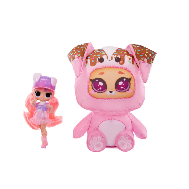 Dar surprizele nu se opresc aici! Dezlipeste Velcro® de pe spatele catelusului pentru a dezvalui papusa Tweens Ali Dance ascunsa in interior!